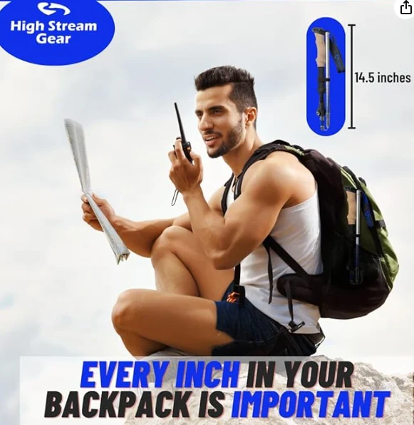 ہائکیئرز کے لئے پیدل سفر کے کھمبے 37 سینٹی میٹر (14.5 انچ) پر گرتے ہیں اور ہر ایک کا وزن ہر ایک آپ کو اپنے ضروری سامان اور ذاتی گیئر کے ل place جگہ چھوڑ دیتے ہیں۔