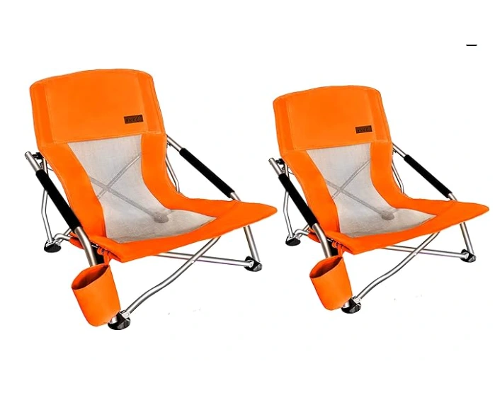 فولڈنگ بیچ سیٹ ، بالغوں کے لئے کم ساحل سمندر کی کرسیاں کپ ہولڈر اور کیری بیگ کے ساتھ پورٹیبل ریت کی کرسی فولڈنگ۔ دھات کے بازوؤں پر بازو کشن ہیں تاکہ آپ آرام سے اپنے بازوؤں کو آرام کرسکیں۔