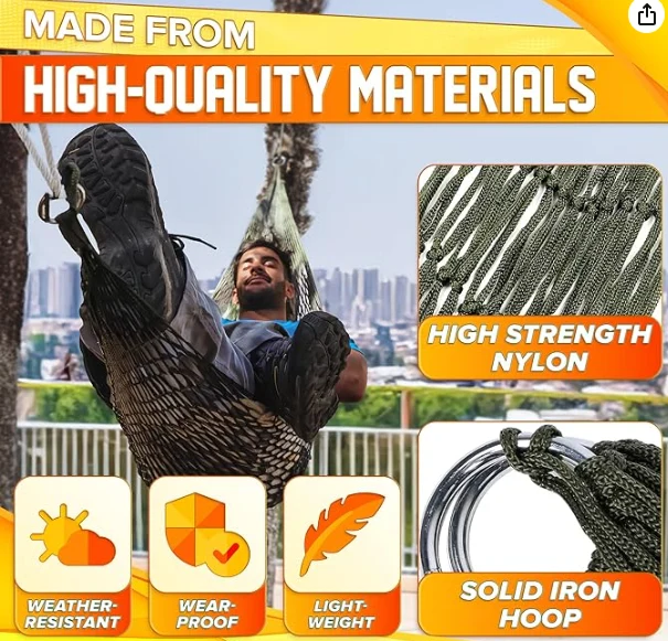 پھانسی پھانسی والے ہیموک ، ان نایلان سٹرنگ ہیموک میں بوجھ اٹھانے کی اعلی صلاحیت ہے۔ یہ نایلان رسی ہیموک اعلی استحکام اور پہننے اور پھاڑنے کے لئے مزاحم کی وجہ سے انڈور اور آؤٹ ڈور کے لئے بہترین ہیں