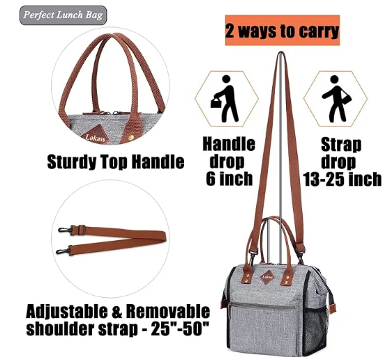 بڑے لنچ بیگ میں ایک اہم ٹوکری (10.5 "x6" x12 ") ، ایک بڑی فرنٹ زپ جیب (8" x7 "x1.5") ، بیک جیب (9.5 "x6.5") اور 2 سائیڈ میش جیبیں ہیں۔ آسان کیری کے ل Top ٹاپ ہینڈلز اور ایڈجسٹ اور ہٹنے والا کندھے کا پٹا (25 "-50") ڈیزائن۔