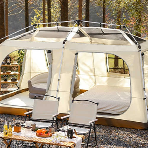 واٹر پروف کیمپنگ خیمے ، جو ہوا کو اندر آنے اور کیڑے کو باہر رکھنے کی اجازت دیتے ہیں۔ اوپر کی بڑی میش چھت رات کو وسیع نظارے کے ساتھ ستاروں کو دیکھنے کے لئے دستیاب کرتی ہے۔
